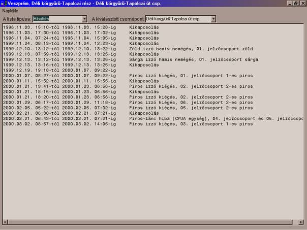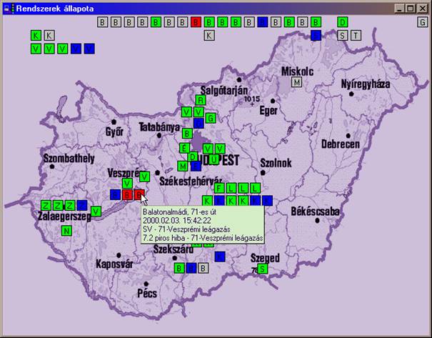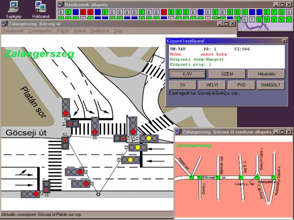 Serviciile softului central și o scurtă descriere: Softul central rulează sub MS Windows 9x, așa că în mare măsură este aceeași ca și alte softuri sub Windows, pentru utilizare este necesar cunoștințe minime de utilizare ale sistemului de operare. Pentru a avea acces la program este necesar un nume de utilizator și o parolă. Utilizatorul intrat are drepturi predefinite, așa că numai acele funcții are la dispoziție ce sunt alocate. Orice modificare realizat de utilizator este calendarizat pentru o ulterioară verificare. După intrarea în program apare fereastra goală și harta afișând sistemele de semaforizare. Pe hartă putem vedea ultima stare cunoscută despre sisteme.